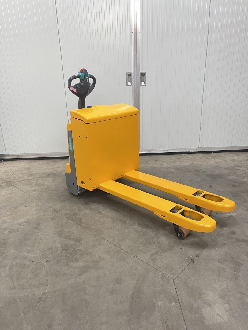 De wendbare en rendabele elektrische palletwagens EJE van de 1-serie zijn ideaal voor het laden en lossen van vrachtwagens en het dagelijks transporteren van pallets. Dankzij hun compacte afmetingen en geringe gewicht zijn ze ook perfect om mee te nemen in een vrachtwagen. De zijdelings aangebrachte steunwielen zorgen voor een hoge rijstabiliteit en de bediening op de stuurboom is eenvoudig en ergonomisch, tevens is het mogelijk om met recht opstaande dissel te kunnen rijden, erg makkelijk in de kleine ruimte.